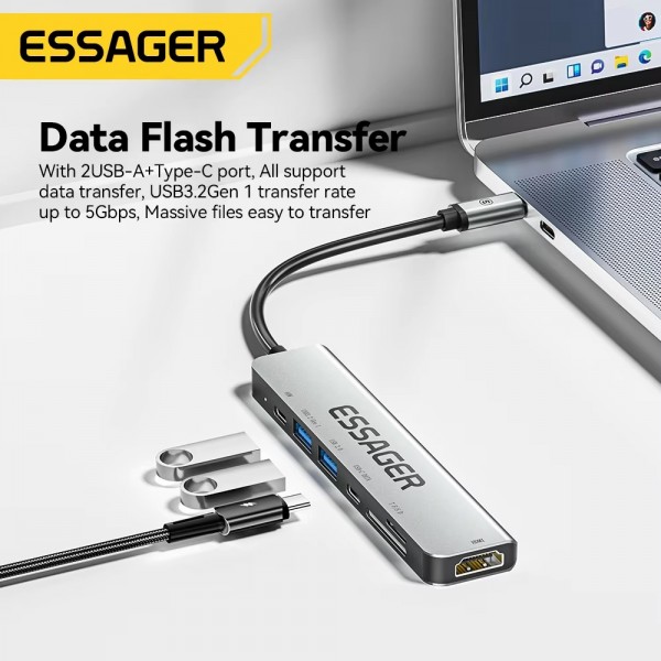 Essager – Station d'accueil pour ordinateur portable 7 en 1, Hub USB type-c vers HDMI, pour Macbook Pro Air, extenseur, séparateur d'adaptateur USB 3.0