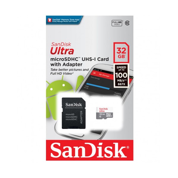 Carte mémoire sandisk 32 Go MicroSDXC Ultra Select Avec une vitesse et une fiabilité étonnantes, la carte mémoire microSDXC ultra de 32 Go de Samsung vous permet de tirer le meilleur parti de vos appareils. Des vitesses de lecture et d'écriture ultra-rapides allant jusqu'à 100 Mo/s et soutenues par une protection à 4 niveaux, protégez vos données contre l'eau, les températures extrêmes et d'autres conditions difficiles. Sentez-vous en confiance pour capturer, stocker et transférer sans effort des vidéos, des photos, de la musique et d'autres fichiers volumineux UHD. Vos souvenirs et vos aventures sont irremplaçables et désormais inoubliables.