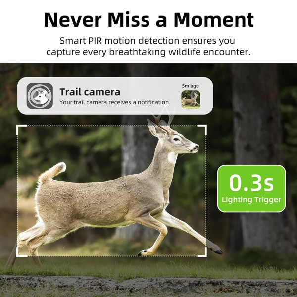 - Détection de mouvement PIR rapide : temps de déclenchement de 0,3 seconde avec un angle de détection large de 125° et une distance de détection de 25 m.