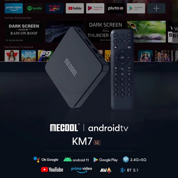 MECOOL KM7 SE alimenté par le chipset Amlogic S905Y4 avec processeur ARM® Cortex ™ A35 quadricœur 64 bits et processeur GPU ARM G31 ™ MP2, prenant en charge à la fois 2,4 et 5 GHz, ainsi qu'un LAN Ethernet 10/100 pour assurer la stabilité et la solidité signal réseau connecté. Prise en charge du décodage AV1 et exécution avec le dernier système d'exploitation Android 11, qui offre aux utilisateurs une meilleure expérience de streaming avec une vitesse d'exécution plus rapide et de meilleures performances.